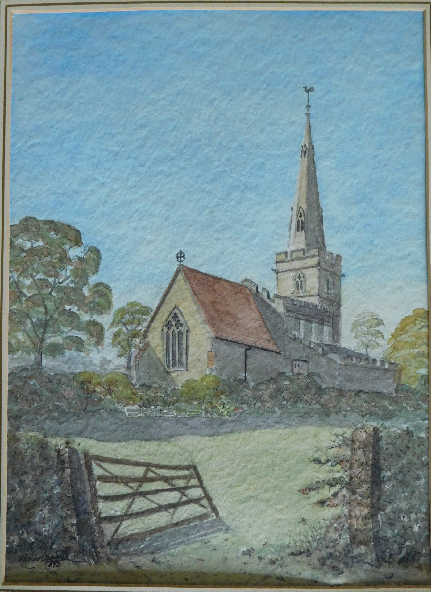 Original Water colour painting St Peter's Church Newton Bromswold Northants.