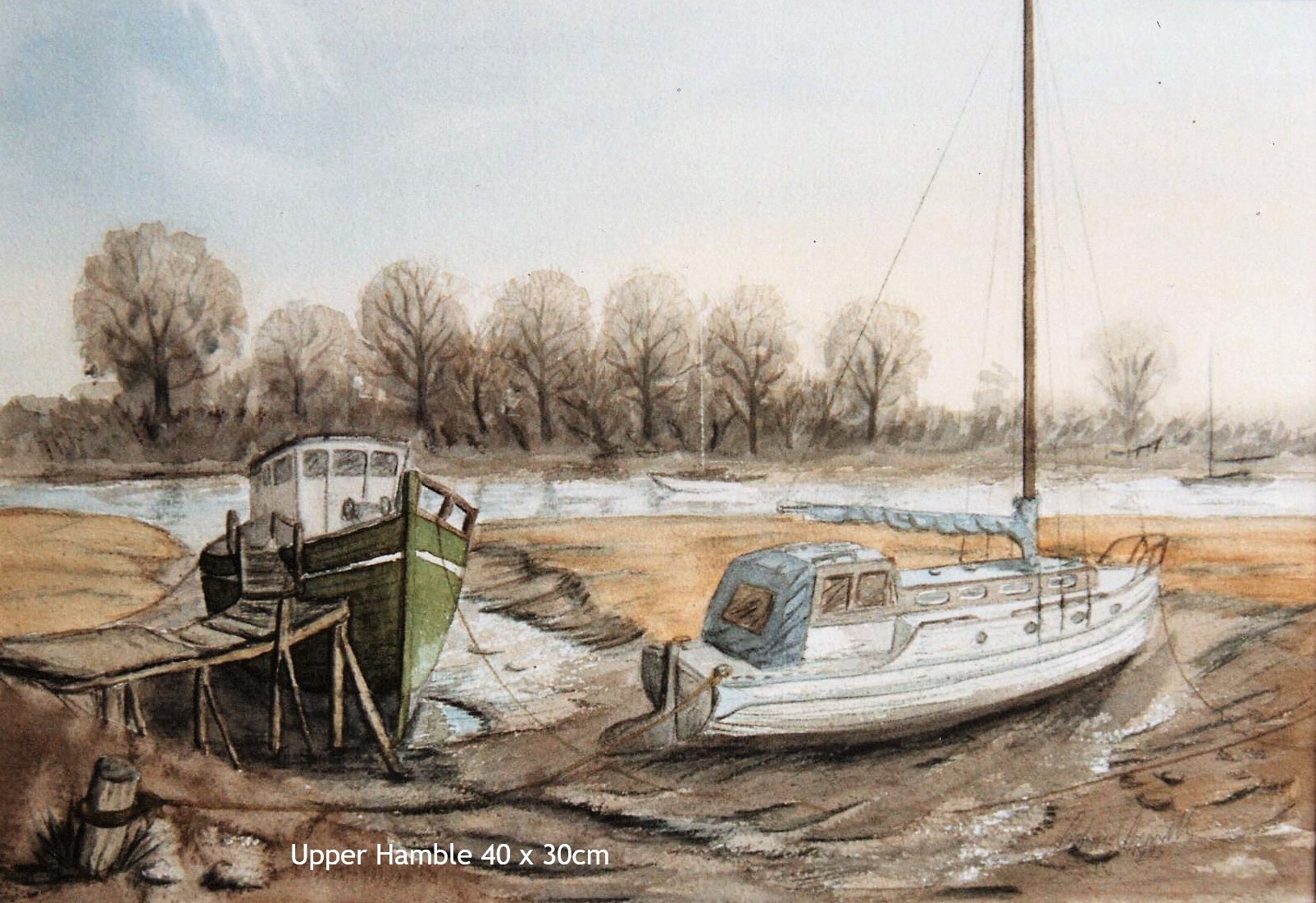 Original Watercolour painting - Upper Hamble lowtide